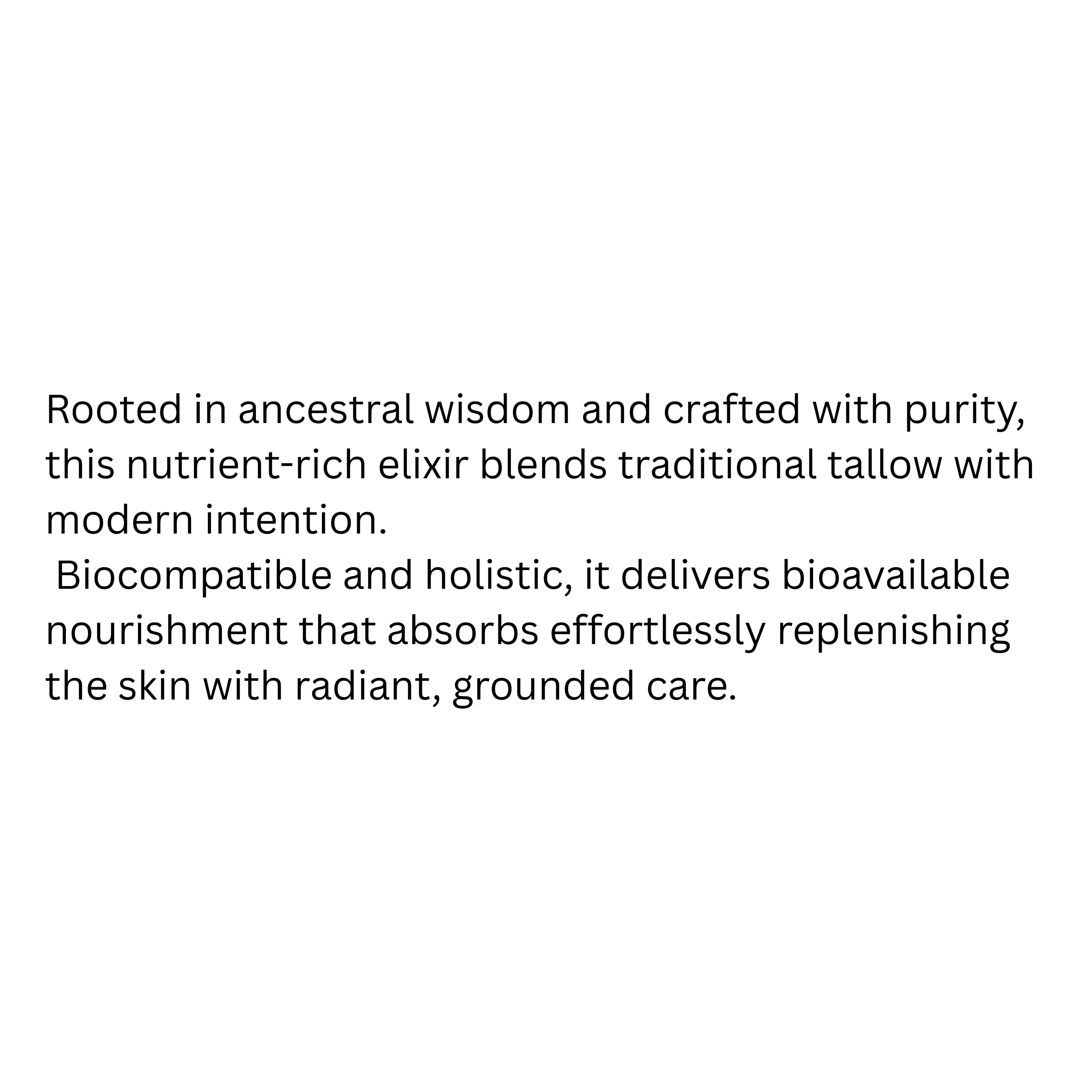 Our Tallow Elixir Balm is crafted with 100% grass-fed, nutrient-rich tallow β a bioavailable, ancestral ingredient naturally abundant in vitamins A, D, E, and K. Unlike plant oils or synthetics, tallow mimics human skinβs own lipids, making it deeply compatible, restorative, and barrier-supportive for all skin types.